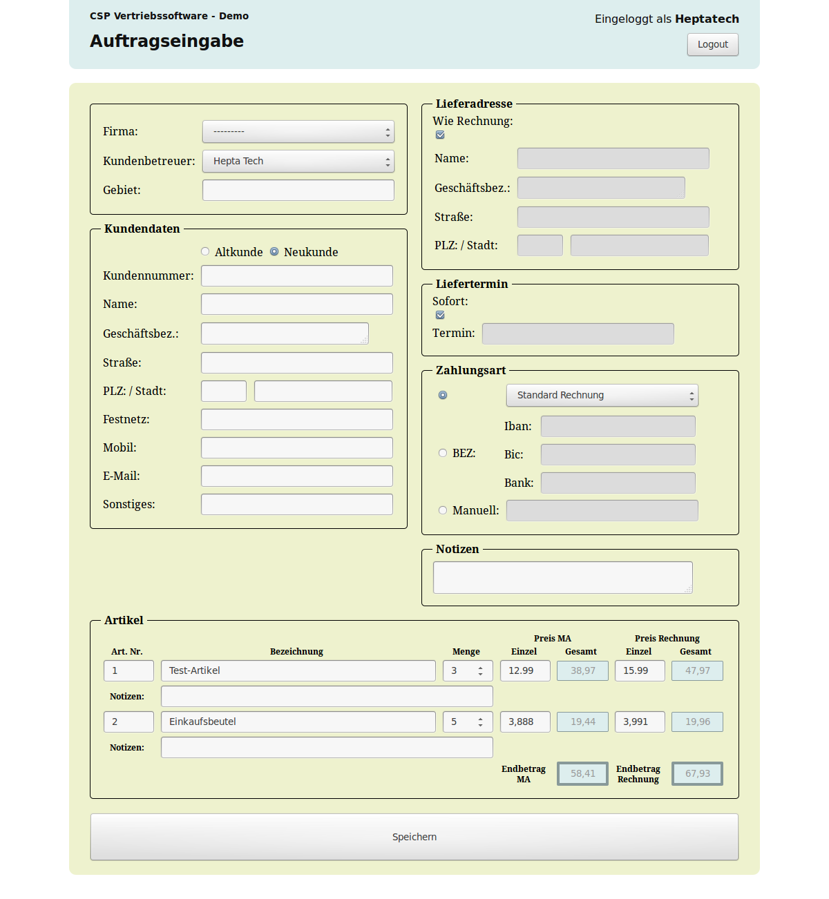 - Auftragseingabe: Die Eingabe der Artikelnummer reicht aus, um die Stammdaten in den Auftrag zu übernehmen.